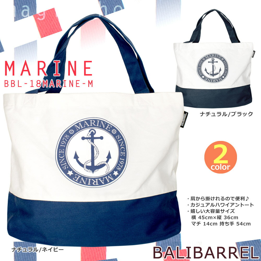 キャンバス トート バッグ ハワイアン 雑貨 帆布 コットンバッグ メンズ レディース モンステラ柄 大容量 ショルダー ハンプ マリン ボーダー BBL-18MARINE-M