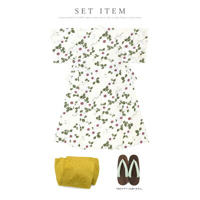 【7/19~26お買い物マラソン★全品クーポン最大2000円OFF】浴衣 3点セット(浴衣/半幅帯/下駄) ホワイト 白 緑 クレマチス モダン 変わり織り 女性用 浴衣セット 30代 40代 ママ 大人浴衣【Sサイズ】【フリーサイズ】【送料無料】【あす楽対応】