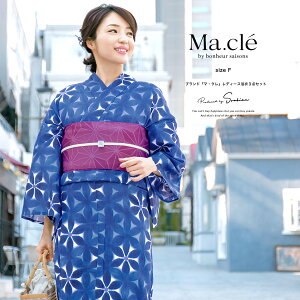【7/19~26お買い物マラソン★全品クーポン最大2000円OFF】浴衣 セット レディース レトロ 浴衣セット 3点セット 紺系 ネイビー ピンク 花つなぎ 総柄 綿 半幅帯 女性 ボヌールセゾン マクレ 30代 40代 ママ 大人浴衣 【送料無料】【あす楽対応】【浴衣 セット】