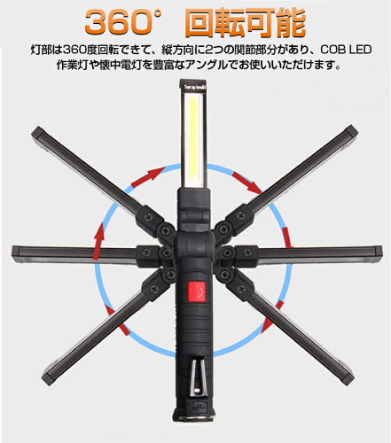懐中電灯 led 強力 最強 充電式 led作業灯 cob 折り畳み式 LEDライト USB充電式 ワークライト 磁気ベース 防水 マグネット機能搭載 応急ライト 360度回転 携帯便利 キャンプ 山登り 台風 地震 停電 対策 防災 夜間作業