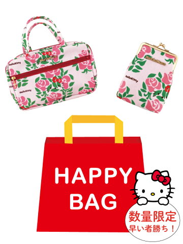 ハローキティ 日本製のハッピーバッグ 2021 2020 バラ柄 大人キティ キティちゃん コスメポーチ 小物入れ がま口 サンリオとのオリジナルコラボ商品 トラベルポーチ 一泊二日の旅行に 送料無料 あす楽対応 大容量 お買い得 大人可愛い 数量限定 セット商品 バッグインバッグ